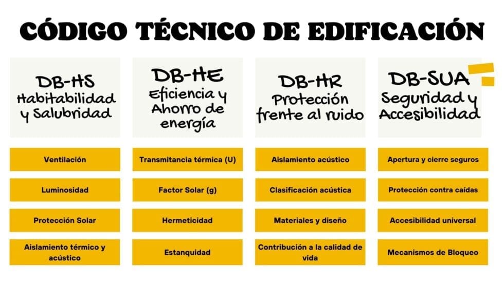 Desde el Documento Básico de Habitabilidad y Salubridad (DB-HS) hasta el Documento Básico de Protección frente al Ruido (DB-HR) y el Documento Básico de Seguridad de Utilización y Accesibilidad (DB-SUA), cada aspecto del CTE aborda necesidades específicas para garantizar que las ventanas no solo cumplan con los requisitos legales sino que también contribuyan al bienestar de los ocupantes y a la eficiencia energética del edificio.
